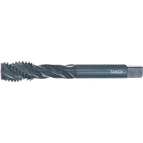 高炭素鋼の硬さに負けないように、ねじれ角とすくい角を弱くして刃先を厚くしたTスパイラルタップです。 |