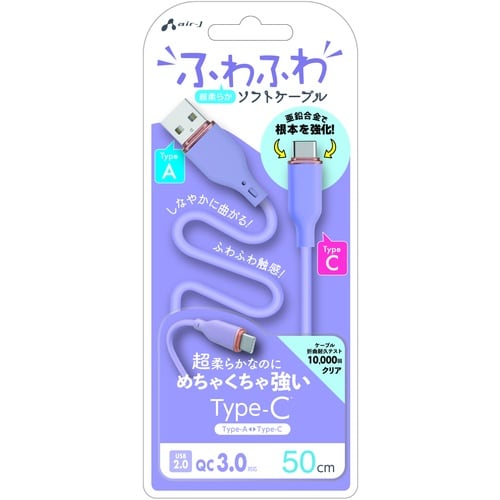 エアージェイ air−J 強化コネクターふわふわケーブルAtoC50CMPR UCJAW50PR 1個 A087-0655