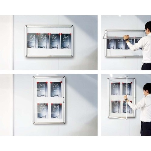 開閉扉付ですので掲示物を保護できます。つなぎ目のない 1 枚扉で掲示物が見やすく、スッキリしたデザインです。いたずら防止プッシュ錠付。 |