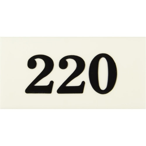 表示内容:220 | 取付仕様:粘着テープ | 縦(mm):35 | 横(mm):70 | 厚さ(mm):2 | 色:数字黒 プレート白 | タイプ:…