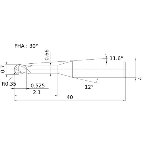 刃数ZEFP(枚):2 | 切削径DC(mm):0.7 | ボール半径RE(mm):0.35 | 最大切込みAPMX(mm):0.525 | 使用可能…