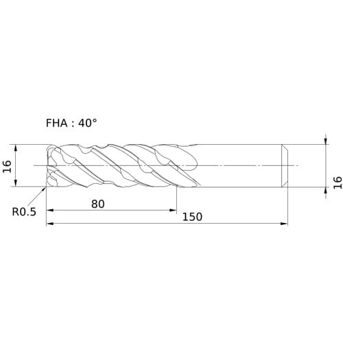 刃数ZEFP(枚):5 | 切削径DC(mm):16 | コーナ半径RE(mm):0.5 | 最大切込みAPMX(mm):80 | 機能長さLF(mm…