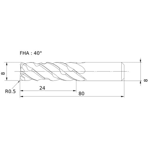刃数ZEFP(枚):5 | 切削径DC(mm):8 | コーナ半径RE(mm):0.5 | 最大切込みAPMX(mm):24 | 機能長さLF(mm)…