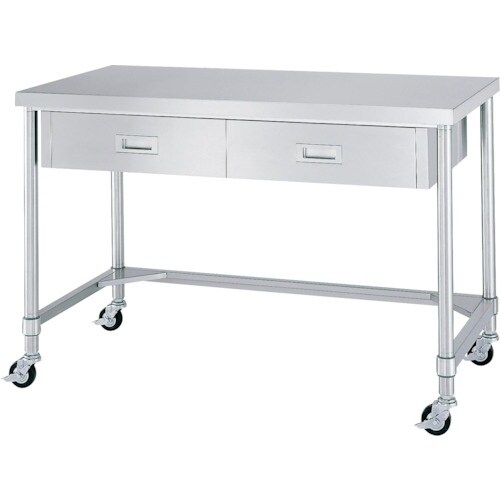 シンコー ステンレス(SUS304)作業台片面引出付三方枠キャスター付 φ75ウレタン車 ステンレス金具 900×750×800 WDTNC9075800SU75 1台