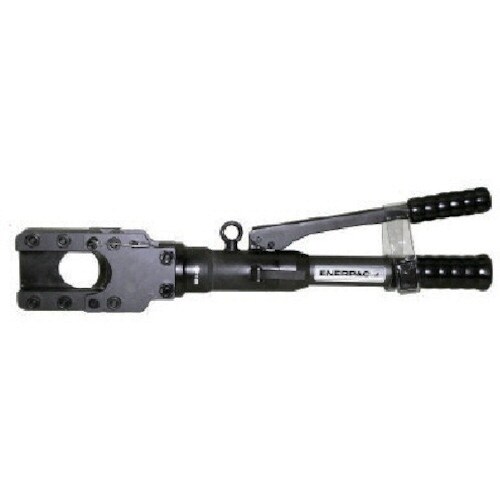 単動スプリング戻り型です。油圧ポンプを内蔵しています。ギロチン式切断で操作が容易です。受け刃側を簡単操作で開くことができます。 |