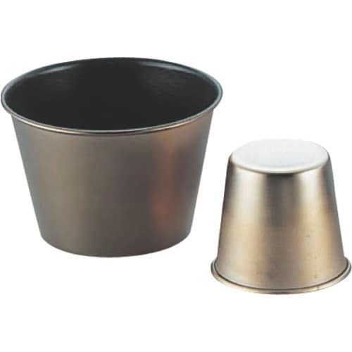 プリン等の流し型です。※外側はフッ素樹脂加工をする際に高熱で変色していますが 材質上・使用上、共に何の問題もございません。
