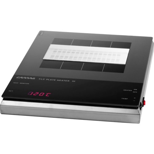 TLCプレートの均一加熱に使用します。25ー200℃の温度範囲で20x20cm の TLC プレートも均一に加熱することが可能です。安全面に配慮したオーバーヒート防止機能付きです。 |