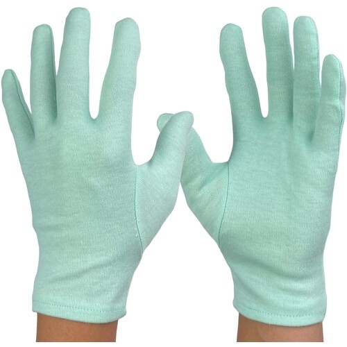 編み目のしっかり詰まったライトグリーンの綿手袋です。安価で吸汗性に優れインナー手袋から作業用途、手荒れ予防まで様々な用途にご使用出来ます。