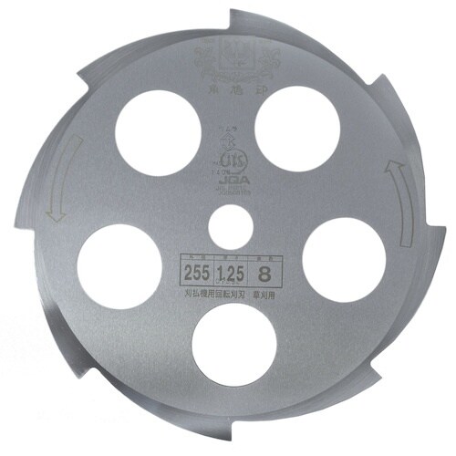 日本製の合金工具鋼を使用し、国内工場で製造した純日本製刈刃です。草刈用。 |