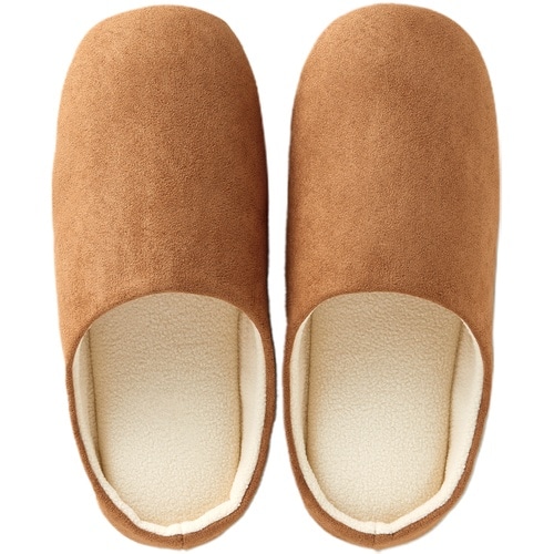 フリース生地が足を包み込み、つま先まであたたか。シンプルでおしゃれなスエード調生地のふかふかルームスリッパです。つま先上がりのフォルムで、お家にある小さな段差につまづきにくいです。 |
