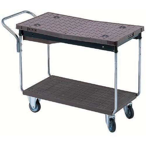 定番の操作性に優れた2段運搬台車です。サビに強いステンレスと樹脂の組み合わせ。抽斗を標準装備。