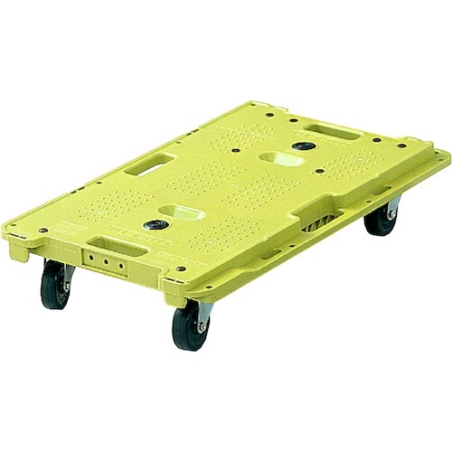 定番の操作性に優れた平台車です。縦、横に何台でも連結可能です。空車時に積み重ねて保管し、省スペース化できます。運搬用カート、平台車として。