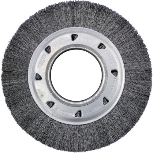 独自開発のハイカーボンスチールワイヤーにより長寿命で安全性、研削性に優れています。クリンプト(波線)ワイヤーを使用したホイールブラシです。 |