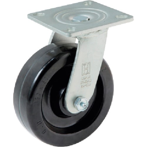 金具に浸炭焼入れを施すことにより、旋回抵抗を小さくし、長時間滑らかに使用できます。フェノール樹脂に繊維を加えて強度を高めており、高荷重・長期間の使用でも変形しにくいです。重荷重用台車などに。 |