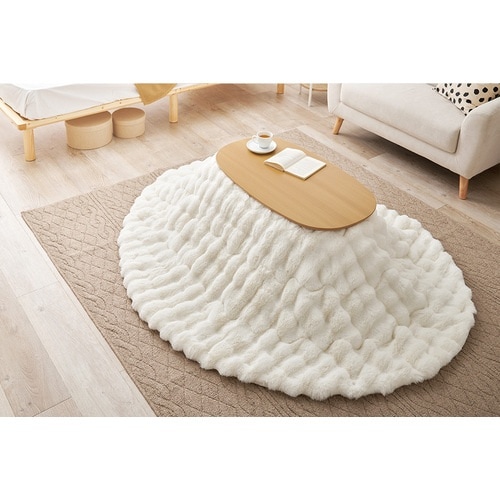 萩原 こたつ布団 ポコポコラビットファー ルナ 楕円形 210×170 アイボリー 270611412 1枚