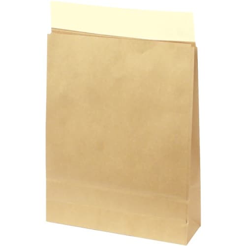 クラフト紙の宅配袋です。1包10枚入です。ベロ付き(L50mm)。マチ80mm。 |