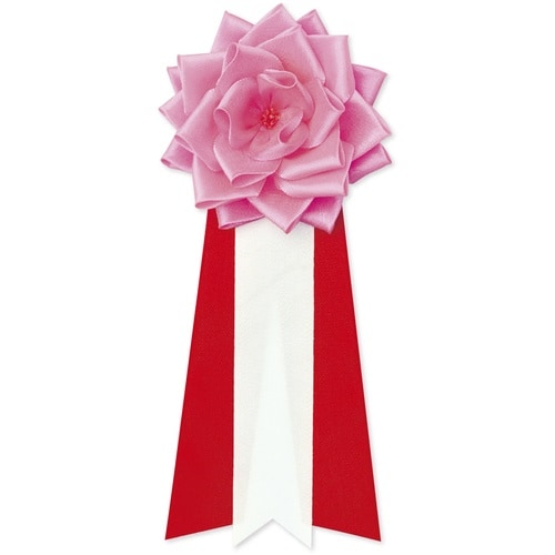 式典の記章です。一般的に赤か桃を招待客、白が主催者側になります。