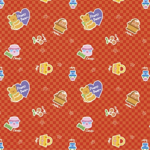 可愛いテディベア柄の包装紙です。ポップなキャラクターのデザイン。 |