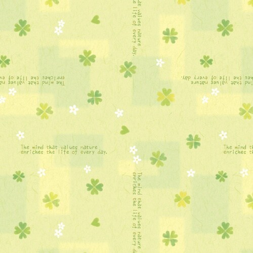 ファンシーなグリーン柄の包装紙です。クローバーをランダムに配置。 |