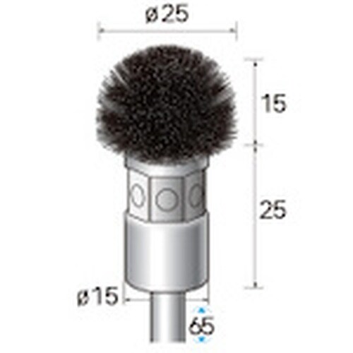 毛材:硬鋼 | 外径(mm):25 | 幅(mm):15 | 軸径(mm):6 | 全長(mm):65 | 線径(mm):0.3 | 最高使用回転数(…