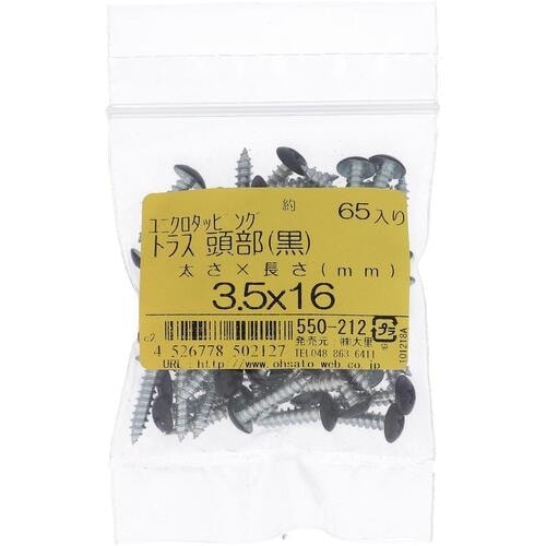 OHSATO OHSATO ユニクロカラータッピングトラス クロ3.5X16(65) 550212 1袋(65本) A08A-5375