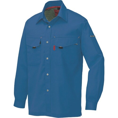 色:ブルー | サイズ:M | タイプ:長袖 | その他仕様:液アン加工(形態安定) | 前立て:ドットボタン(金属) | ポケットファスナー:金属フ…