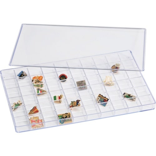 透明なコレクションケースです。フタ、仕切付です。