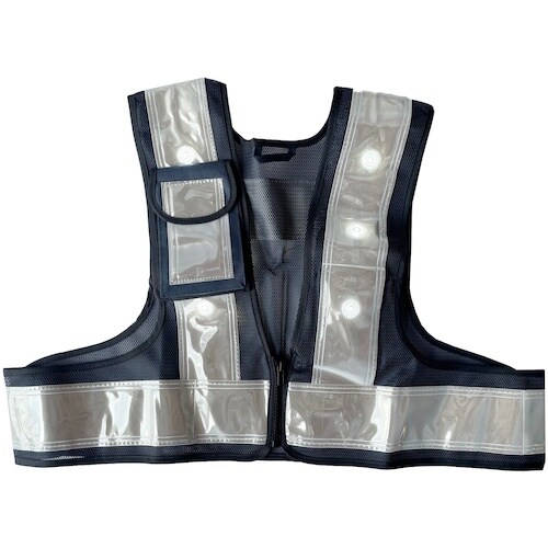 前合せ部分がファスナーなので着脱がスムーズです。 LED11個で夜間の視認性抜群です。