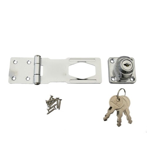 ドアやフタ等の施錠ができる鍵付きの掛金です。鍵でツマミを右回転させることにより解錠できます。 |