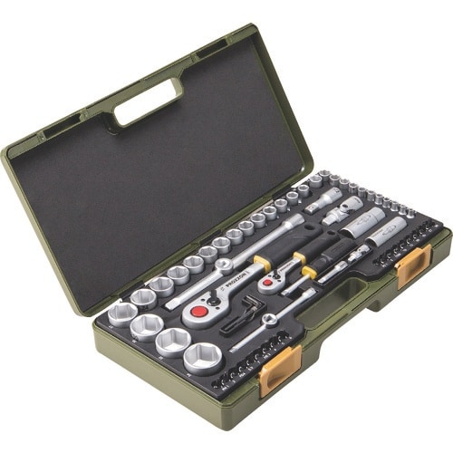 高トルクでの作業と細かい作業に最適なセット複合させたソケットレンチセットです。軽量な樹脂ケース入りです。二輪四輪大型車両整備や農機具、一般産業用に。 |