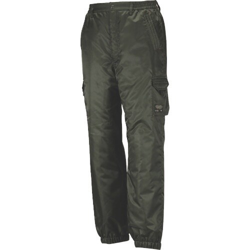 多目的に使える防寒ミリタリーパンツです。脱ぎ着が楽な前ファスナー開き。マチ付きで大容量のフラップ付きカーゴポケットが付いています。冷気や風の侵入を軽減する裾幅調節機能が付いています。一般作業全般に。 |