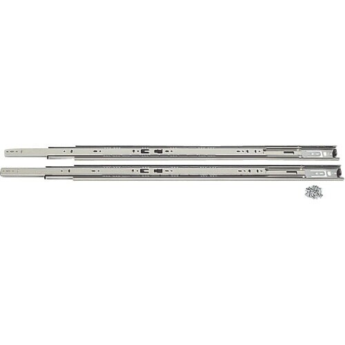 インナーメンバーを完全に引き出せる3段引のスライドレールです。レバー操作でインナーメンバーを取り外せます。レール全閉時にその状態を簡易的に保持します。