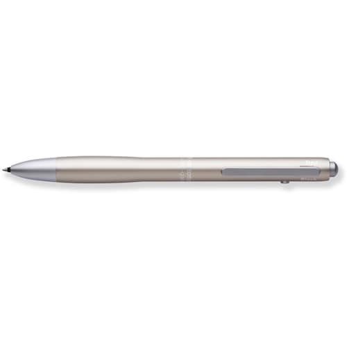 18gの軽量アルミボディにシックなカラーをまとい、黒/赤/青ボールペンと0.5mmのシャープペンシルを内蔵した4機能ペンです。 |