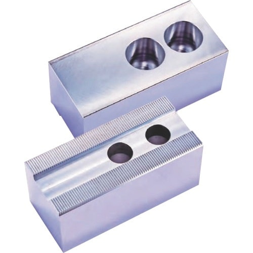 鉄鋼製生爪に比べ軟らかくワークに傷が付きにくいです。比重が小さいので遠心力による把握力の低下を抑えることができ高回転域での使用が可能です。軟らかく切削性が良い為、生爪の成形が容易です。 |
