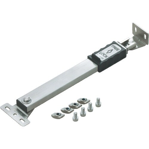 扉を多段階でロックするステーです。任意の位置で操作部をスライドさせると、伸長方向と収縮方向を同時にロックします。LB−350Aと同じ取付ピッチです。樹脂部品と金属部品の分別ができます。 |
