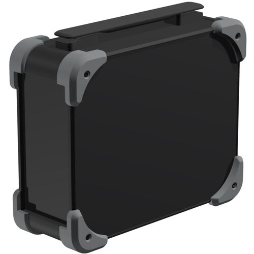 キャリングハンドル付の耐衝撃型アルミケースです。コーナーガードは弾力性のあるTPE (エラストマ) 製で、 滑りにくくゴム足の役割にもなります。