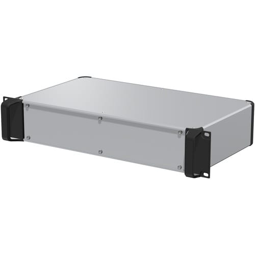 上下カバー・パネルの嵌合部にシールドガスケットをつけたEMCシールドタイプの取手付19インチラックマウントケースです。