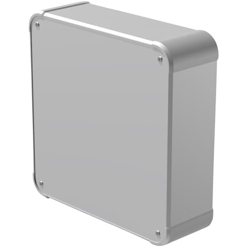 外枠4面がアルミ押出材の側板で構成されたフラットな外観で強度と高級感のあるアルミボックスです。 |
