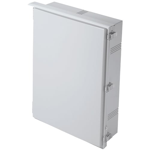 ルーフ(屋根)付の屋外向けプラボックスです。耐熱性・難燃性に優れたポリカーボネート製で通信機器、太陽光発電接続箱等に適しています。