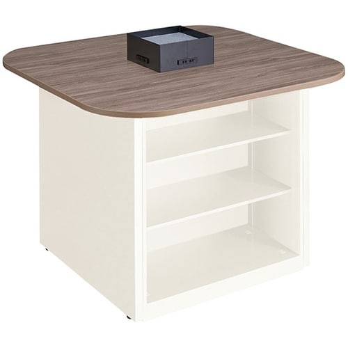 空間の境界に設置して、軽いミーティングに、コピーコーナーの作業台としても便利です。いろんなスペースになじみ、ワーカー同士の偶発的な出会いも育みます。 |