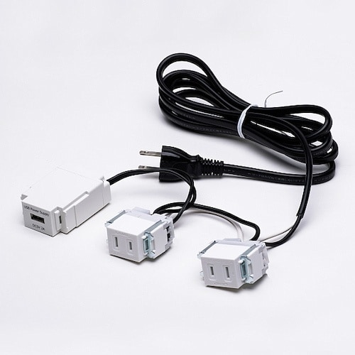 結線済みのため電気工事が不要で、コンセントに直接差し込んで使用できるACコンセント・USBコンセントです。USBコンセントはスマートフォンやタブレット端末の充電ができます。 |