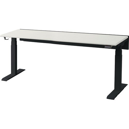間口(mm):1600 | 奥行(mm):700 | 高さ(mm):607ー1257 | 天板色:ホワイト | フレーム色:ブラック | 天板昇降範囲…