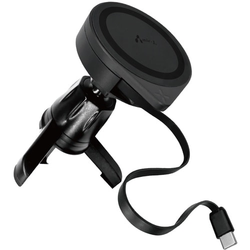 MagSafe対応スマホ専用の充電器です。マグネットで簡単脱着できます。車内エアコン吹き出し口に取り付けするタイプです。 |