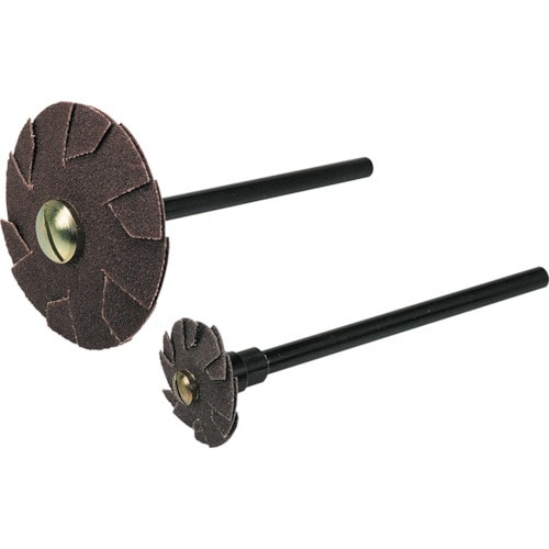管内側や穴の周囲の最終サイズ調整用ディスクです。研磨布の周囲の切り込みが、ワークと研磨布をピッタリとフィットさせます。ワーク直径よりも15ー20%大きい直径のディスクをご使用ください。
