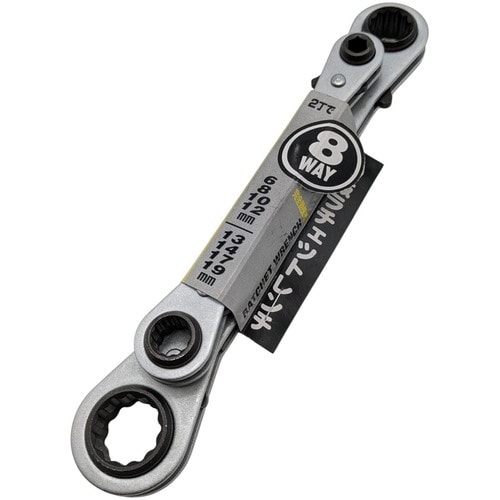 8サイズに対応出来る2丁組の板ラチェットレンチのセットです。1本で4サイズに対応出来る板ラチェトの2丁セットです。 |