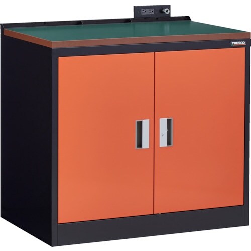 TRUSCO フリッパードアキャビネット 1010X650XH920 天板付 黒(扉:オレンジ) FPB302TCBK 1台