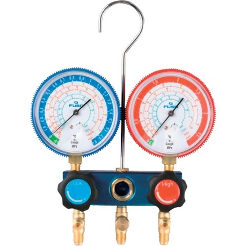 ニードルバルブ式なので微調整ができます。脈動振動吸収式ゲージなので針の振れが少なく読みとりやすいゲージです。冷凍空調設備の冷媒ガスの充填回収に。
