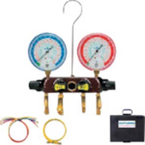 低圧連成計(MPa):−0.1ー3.8 | 高圧連成計(MPa):−0.1ー5.5 | 接続口径:1・4フレア 真空引用3・8フレア | ゲージ径(m…