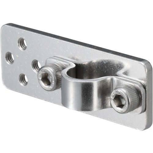 当社シャフトとシングルプレートをつなぐブラケットです。板金仕様のため軽量で安価です。シャフトを固定するサドルも付属しております。