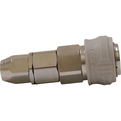 接続はプラグをソケットに押込むだけのワンタッチ操作です。ロック・ロータリ機能付きのため不意な分離の防止やホースのよじれを解消できます。